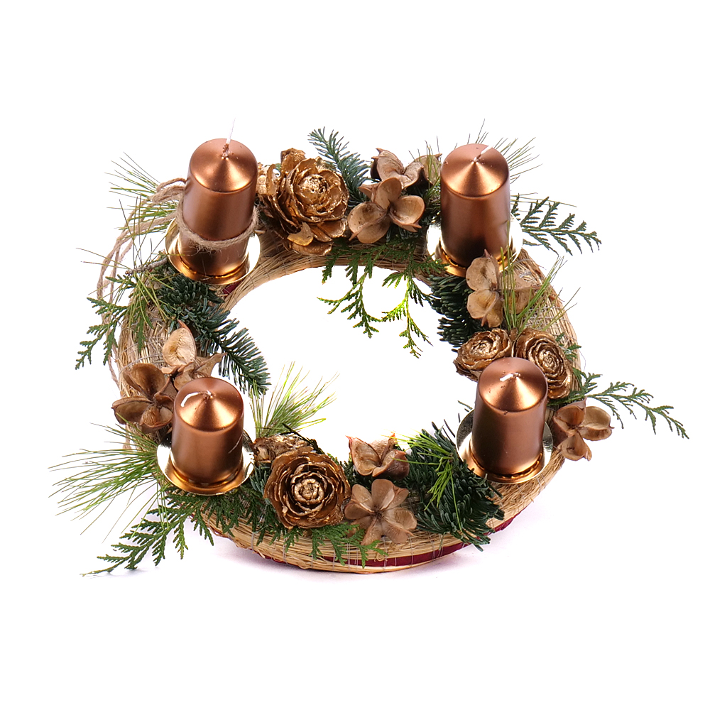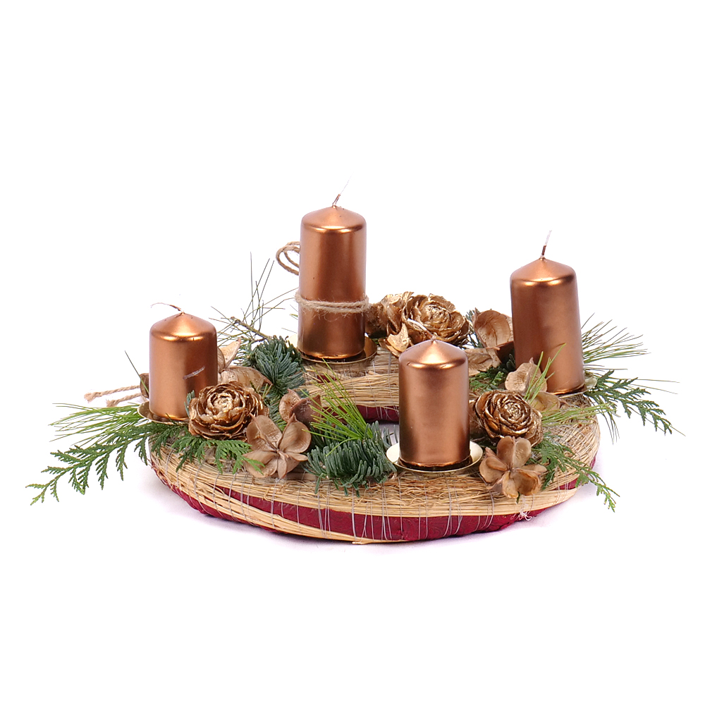 NOVÉ Adventný slamený veniec medené sviečky