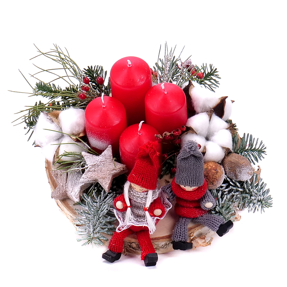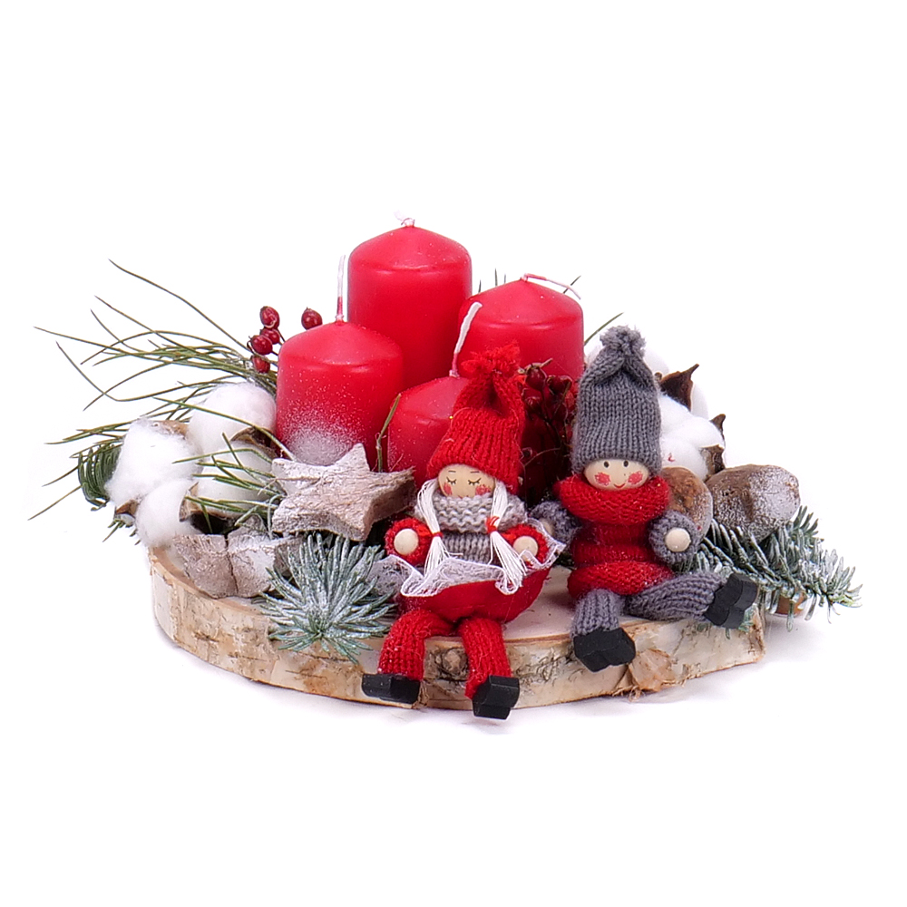 NOVÉ Adventný svietnik na dreve červené sviečky