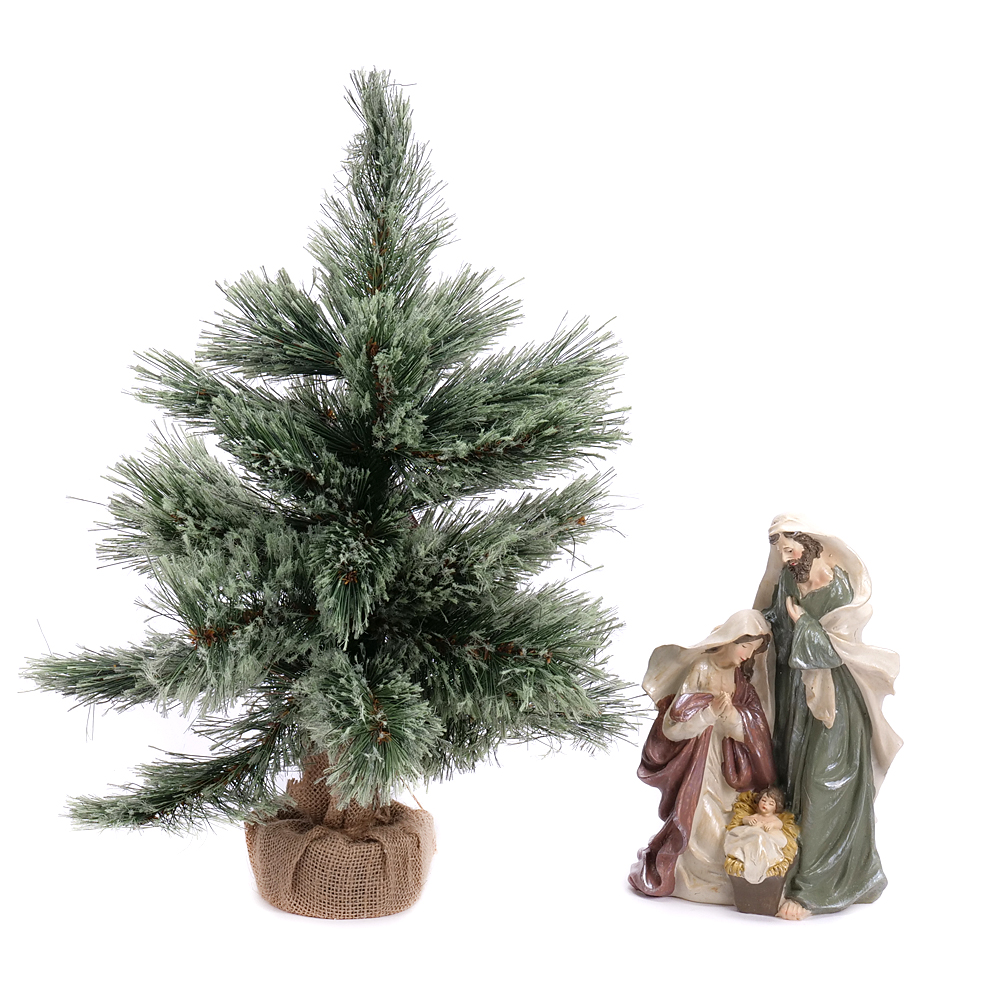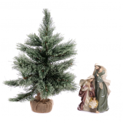 Darčekový set v podobe Betlehemu a umelého vianočného stromčeka.