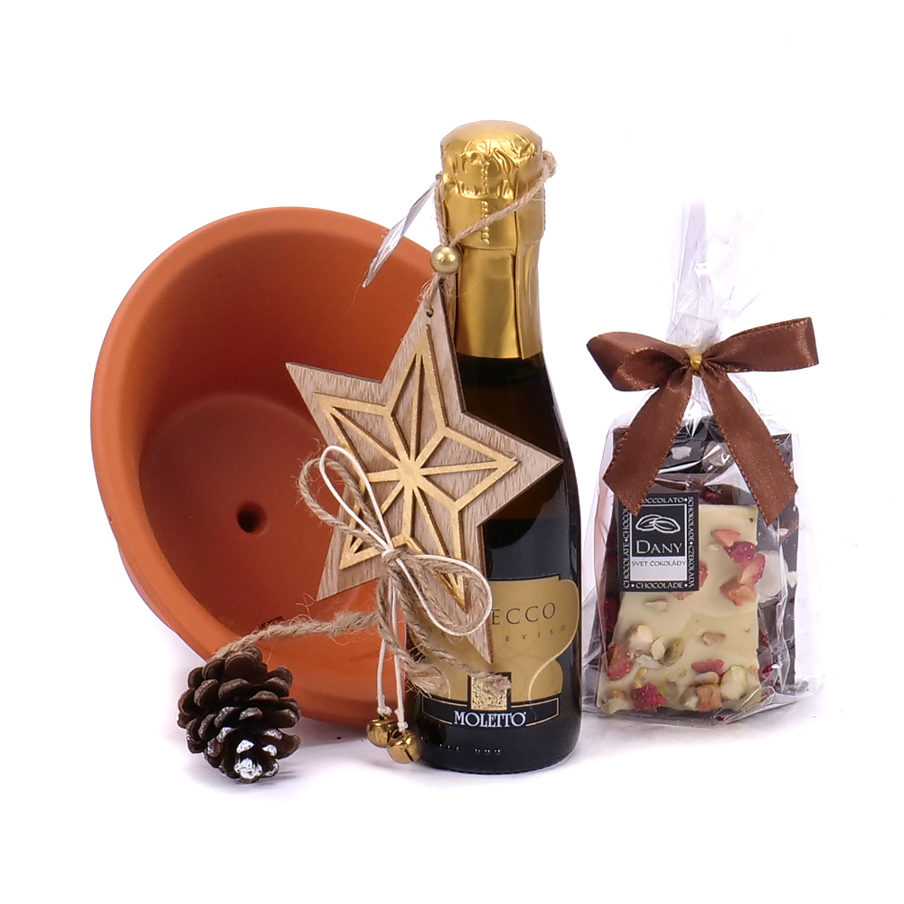 Darčekový set v keramickej mise s Proseccom - 1 ks, ručne robenou lámanou čokoládou - 1 ks a dekoračnou vianočnou hviezdou na zavesenie - 1 ks. ... Viac