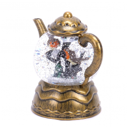 Dekoračná vianočná kanvica do interiéru s LED osvetlením a pohybujúcim sa snehom.