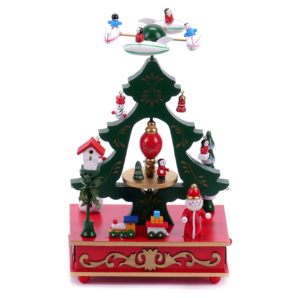 Drevená vianočná dekorácia v podobe hracieho dreveného stromčeka.