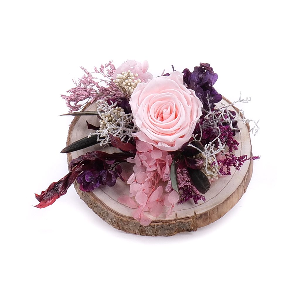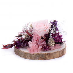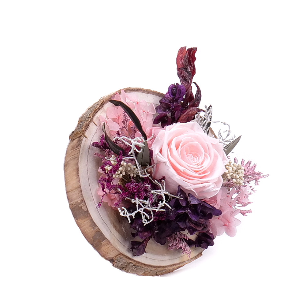 Darujte Vašim blízkym aranžmán s luxusnými trvácnymi kvetmi značky In Eterno, ktoré sú aranžované na drevenom podklade s prírodnými a preparovanými doplnkami.