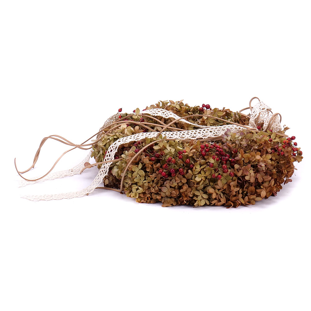 Irigo slamený veniec sušená hortenzia a prírodný materiál