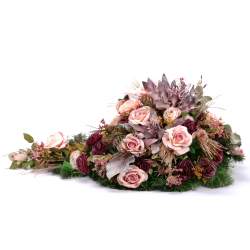 Na pohrebné smútočné kytice je možné doplniť stuhu, na ktorú je možné napísať odkaz s posledným zbohom s dĺžkou maximálne do 60 znakov. Text na stuhu uveďte pri vystavovaní objednávky v poznámke zákazníka.