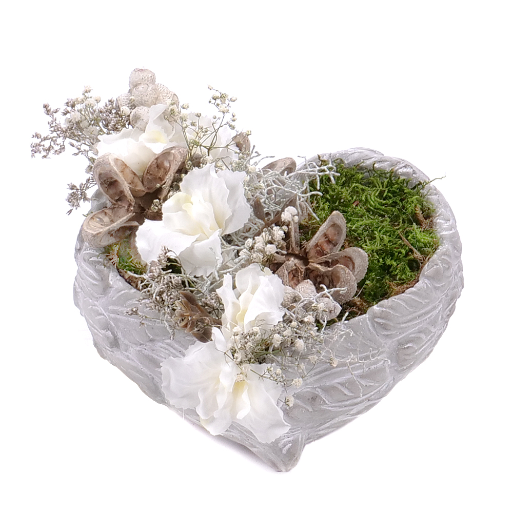 Irigo smútočný aranžmán keramické srdce sušené doplnky