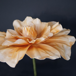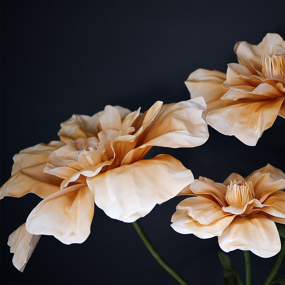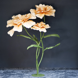 Elegantná dekorácia v podobe troch veľkých umelých (penových) kvetov v jemnom marhuľovom odtieni, umiestnených na stabilnom kovovom stojane s výškou 130 cm. Tento nadčasový prvok pôsobí romanticky, vzdušne a zároveň moderne. Vďaka svojej výške a výraznému dizajnu sa stane nepriehliadnuteľnou dominantou každého interiéru, svadobnej výzdoby alebo výkladu.