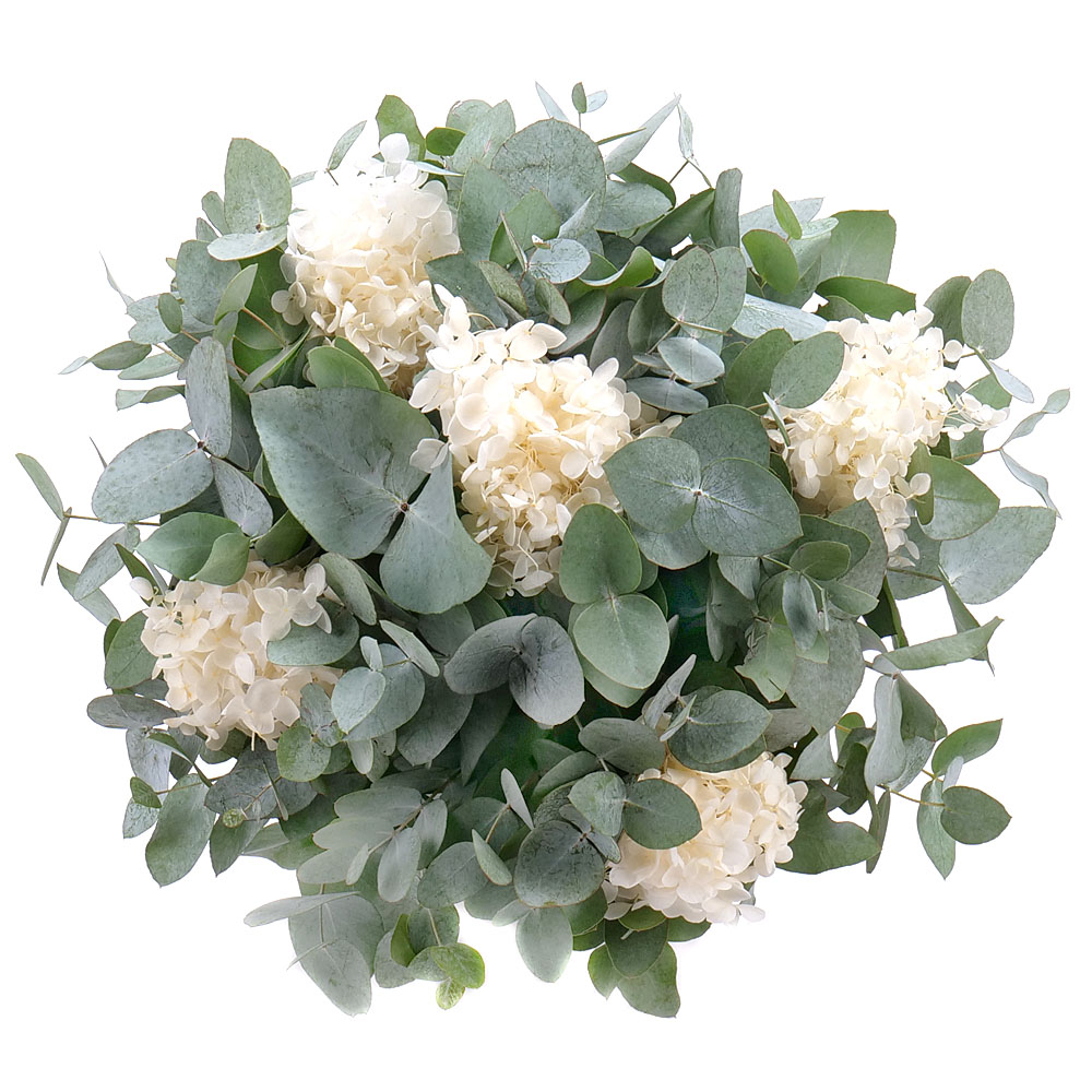 NOVÉ Kytica eukalyptus In eterno biela hortenzia