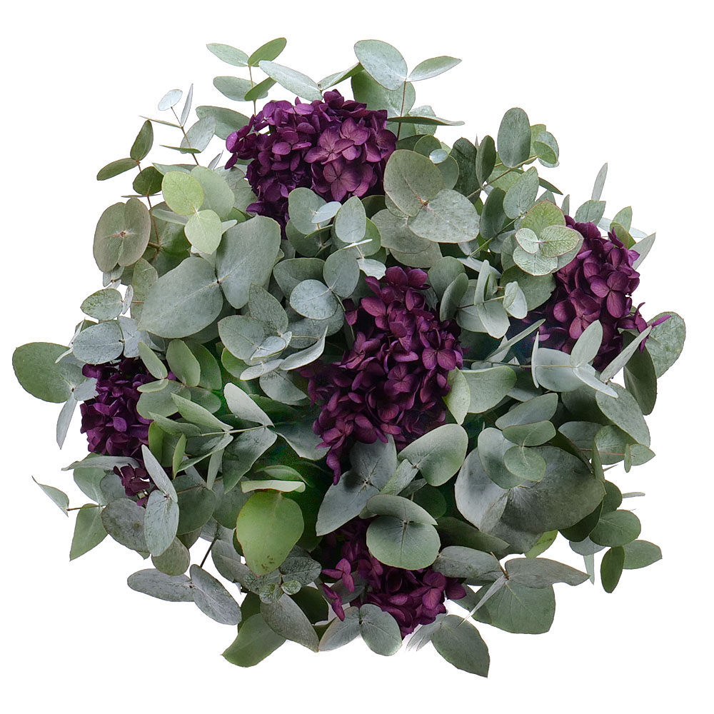 NOVÉ Kytica eukalyptus In eterno tmavo fialová hortenzia