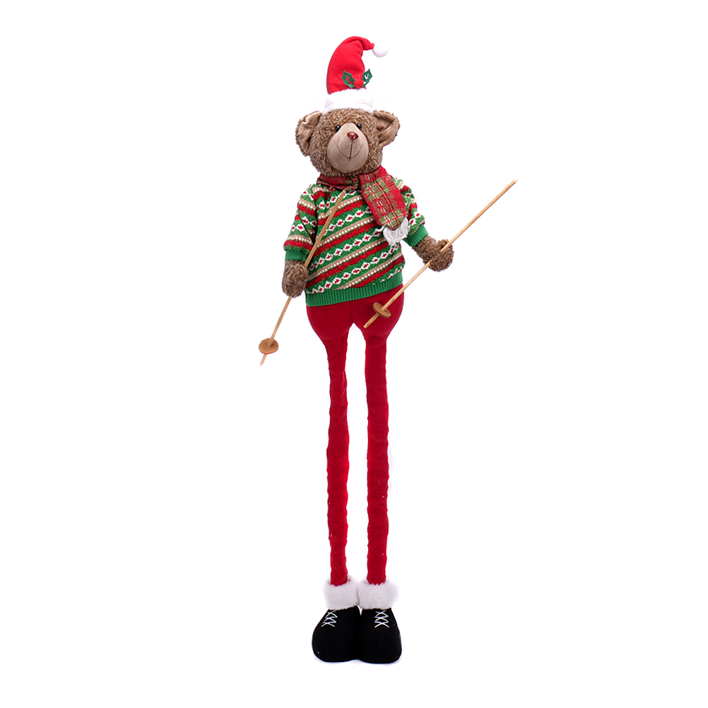Plyšový medveď vo vianočnom oblečení s posuvnými - teleskopickými nohami.