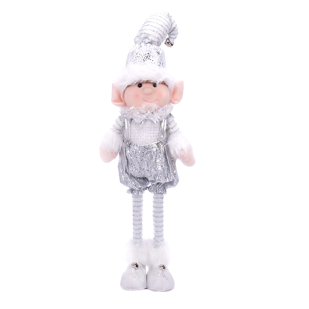 Vianočná plyšová postava škriatka s výškovo nastaviteľnými nohami.